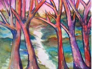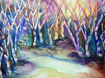 This painting captures moments of thoughts and memories of sunlight being caste on the trees. Dream away!