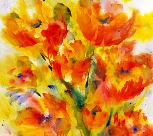 Why not blue tulips, free flowing artist touches of green and a hint of yellow.A favorite among many!floral watercolor painting
