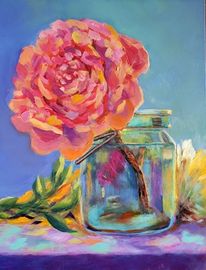 Favorite colors in the full faced flower brightens the day and seeing the old ball jar with the glimmer of sunshine says as titled Thinking of You!