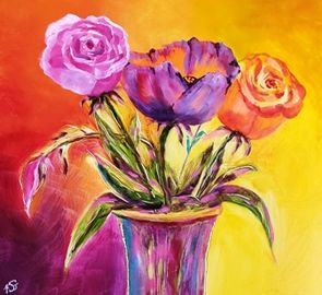 It did help to paint more than one so I did 2 6x6 (sold) & 1, 9x12 of the same floral setting then 1 6x6 of my own design of 3 pears for an upcoming online show.