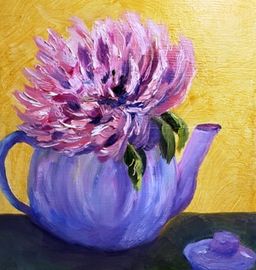 This was a still life for opposites hard teapot and soft flower and before the flower wilted after being picked. It was a big bloom!