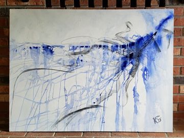 In August I started 3 large Acrylic paintings to stage a remodeled home going up for sale in October. Luckily I got to paint the largest one pictured outside.