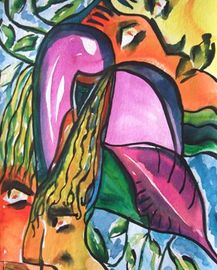 Another wc study of Picasso theme elements using lips and leaves.You don't realize the planing that goes into something that looks so simple til you do it..