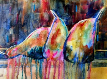Painting upright in watercolor gives a whole different textured quality to the work as you can see in the drips. it just relaxes and was fun to paint.